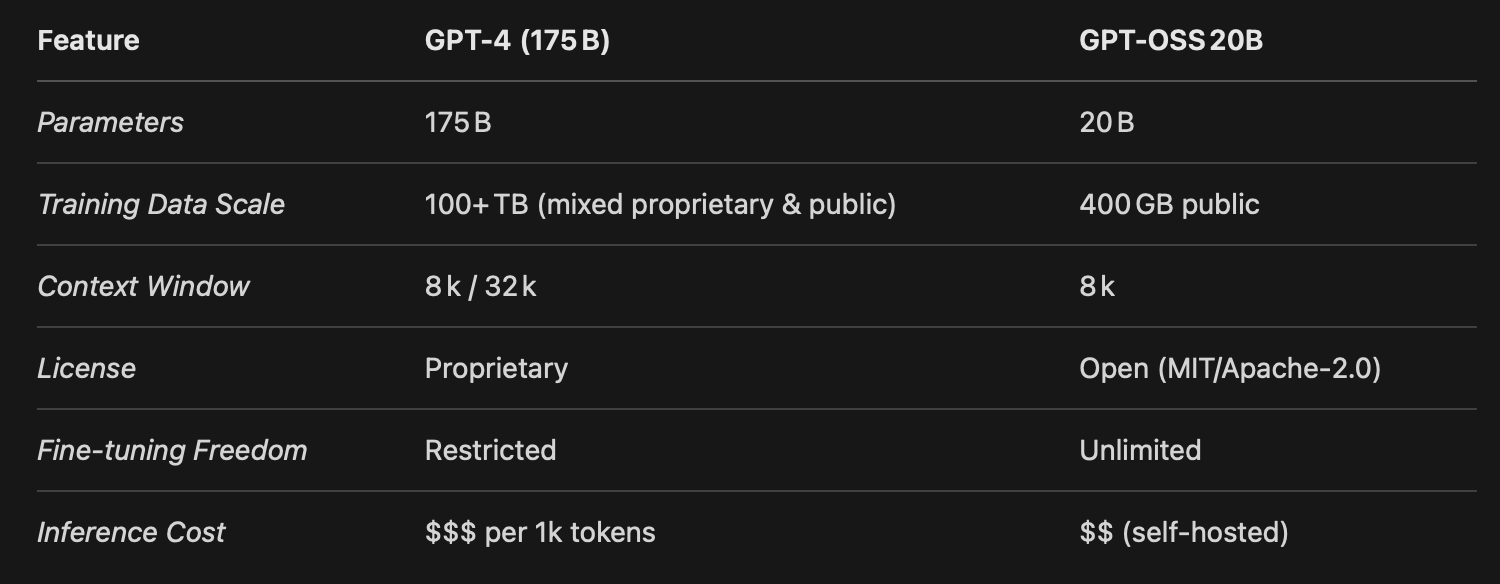 If you ask GPT‑4 to generate a short story, GPT‑OSS 20B will likely produce something a little less polished, but still highly coherent and surprisingly detailed. For most business applications – chatbots, content creation, code completion – the performance difference is marginal, especially when you pair the base model with a well‑trained instruction head.
